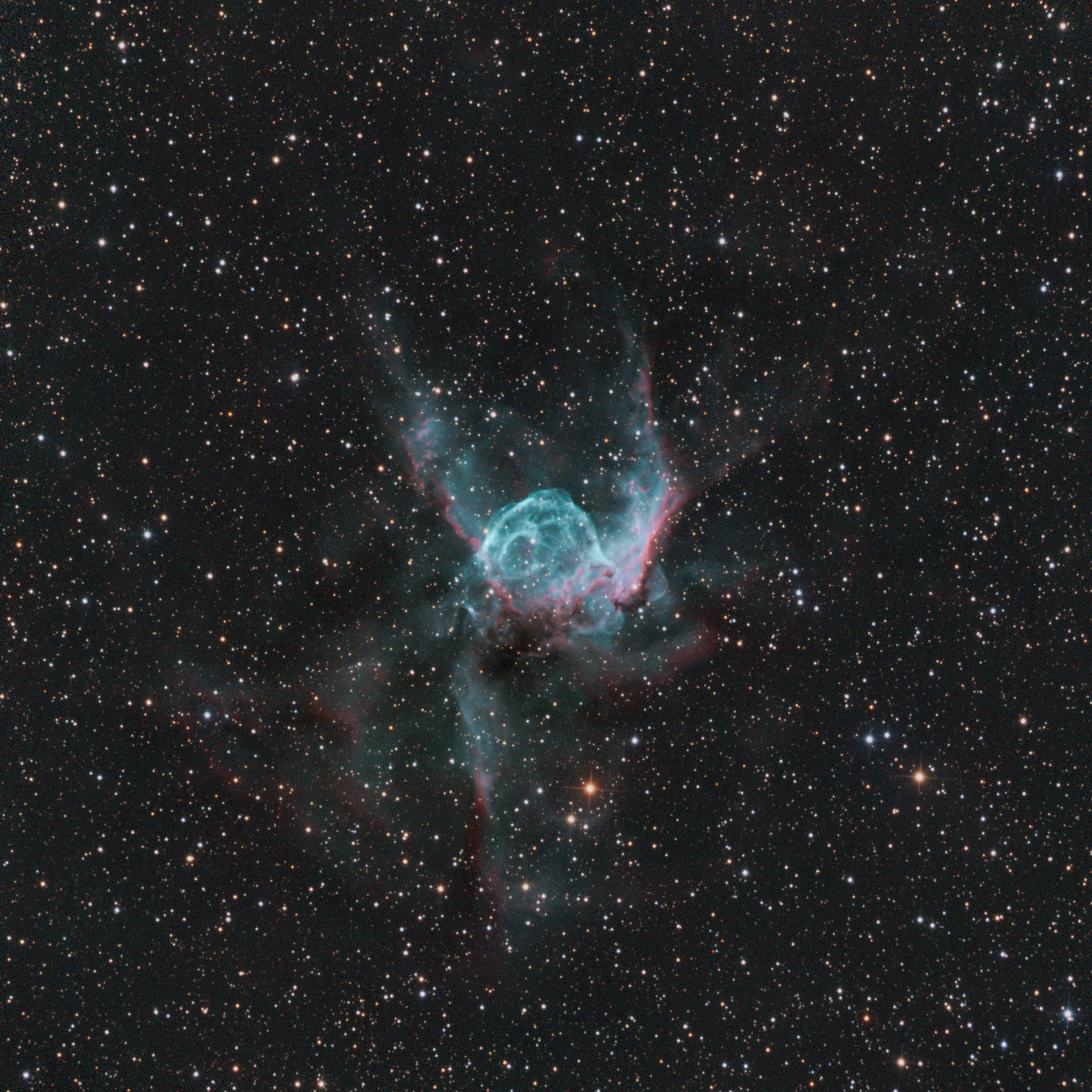 69 Aufnahmen à 120 und 240 sec in L/R/G/B/Halpha/OIII/SII