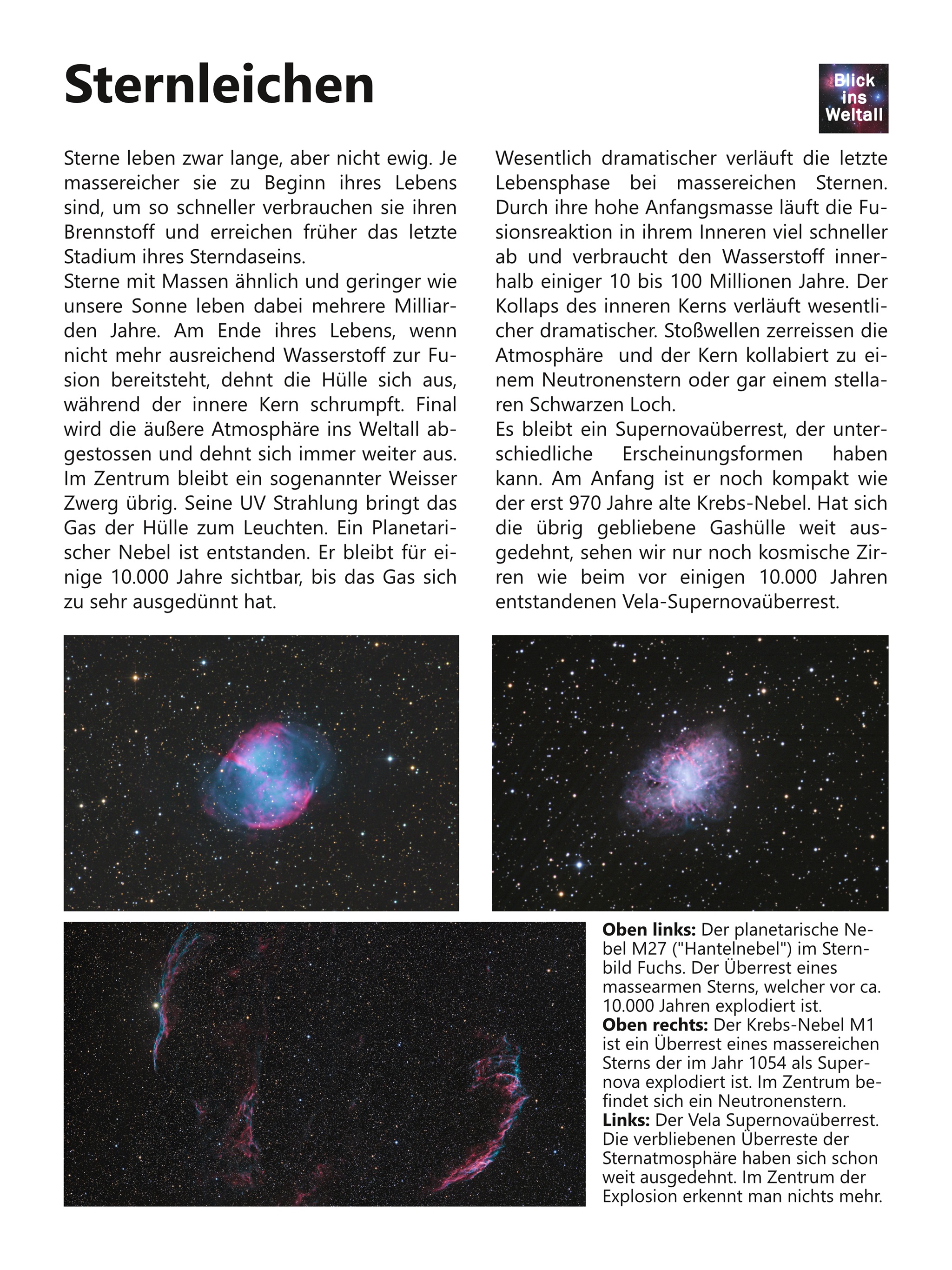 Der Krebsnebel ist einer der wenigen Supernova-Überreste, deren Entstehung tatsächlich beobachtet wurde: Im Jahr 1054 haben chinesische Astronomen einen neuen Stern gesehen. Es war die Explosion eines massereichen Sterns, in deren Folge der Krebsnebels entstand.