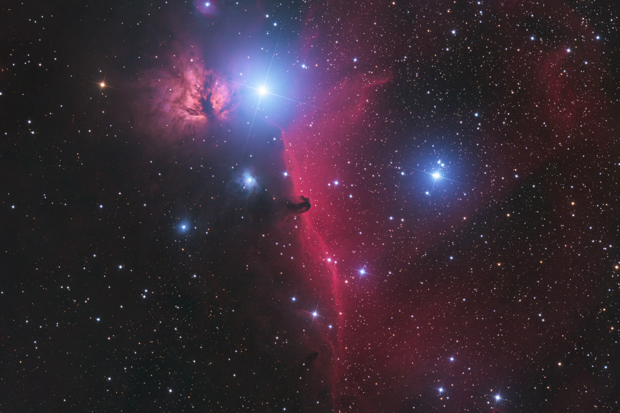 Der Pferdekopfnebel im Orion (B33) ist ein berühmtes Objekt, welches ich natürlich auch mal fotografieren wollte. Das Teleskop T71 von itelescope.net bot sich an, da es ein schön großes Gesichtsfeld hat, in das auch noch der Flammennebel (NGC 2024) hinein passt.