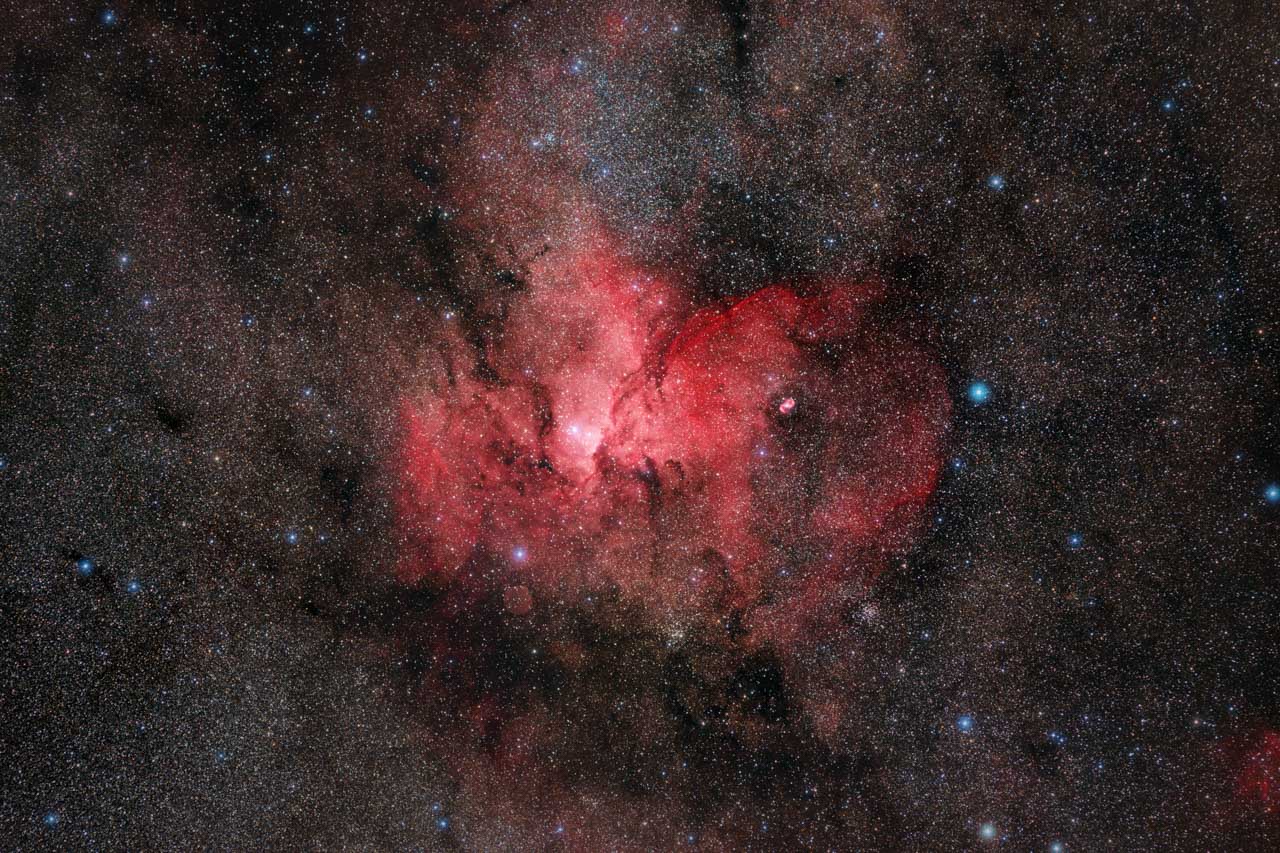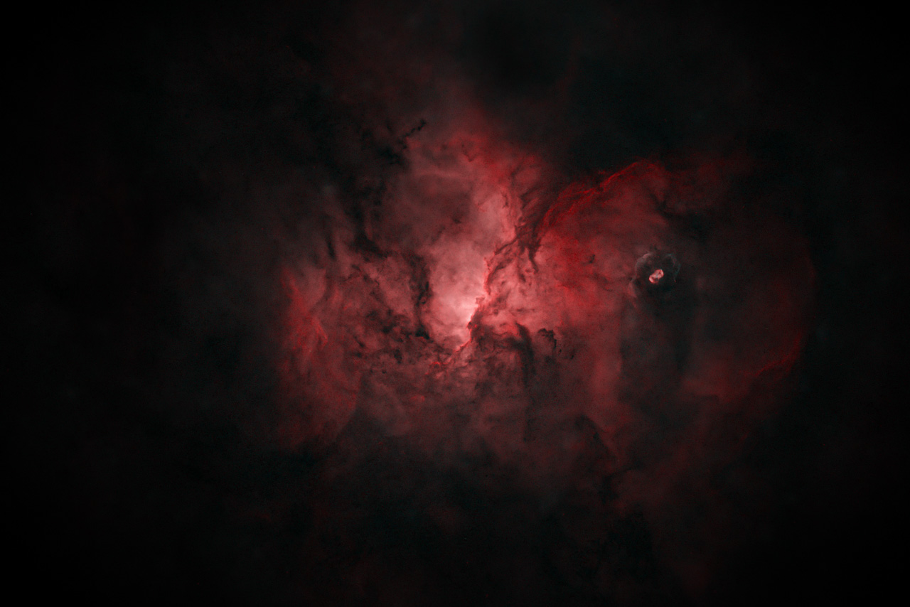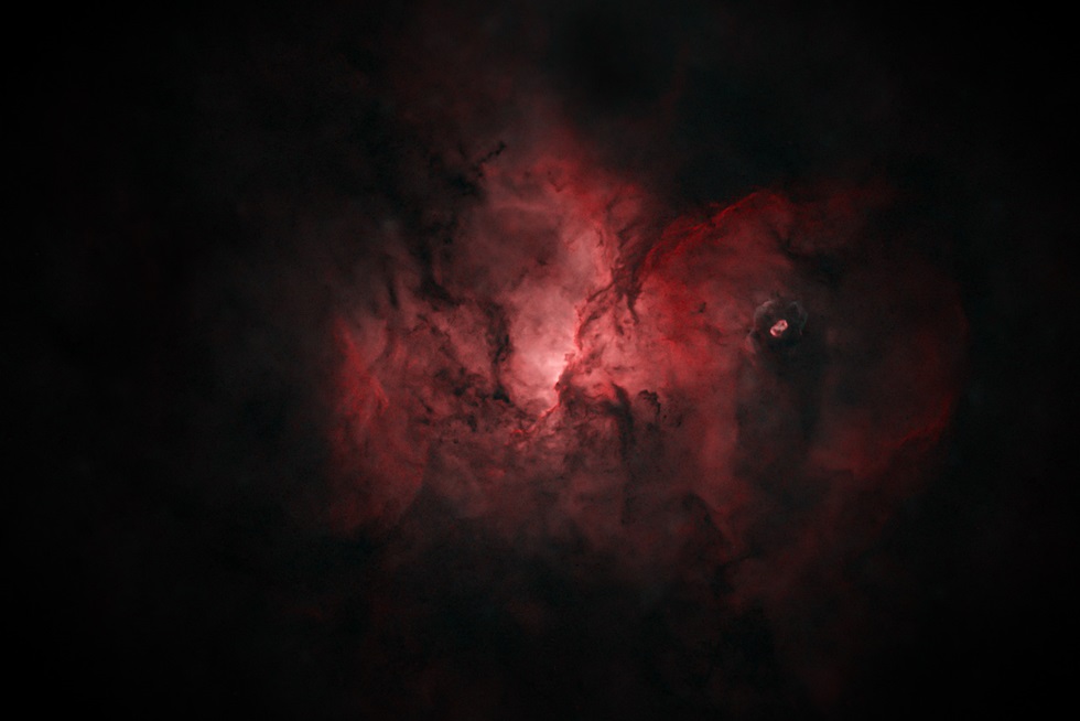 Da der Nebelkomplex in einem sehr sternreichen Gebiet der Milchstraße im Sternbild Altar liegt, habe ich auch mal eine Version erstellt, bei der die Sterne mit der Software Starnetv2+ herausgerechnet wurden. Das zeigt die Struktur des Nebel viel deutlicher.